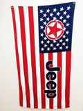 These oversize terry cloth towels are perfect for the beach and your vehicle! Each towel features a big Jeep Logo with sketched drawing. They measure 34" x 64" and feature 2 grommets with a carabiner clip to hold the towel in place over the headrest. If you're on the go... then you need one of these!