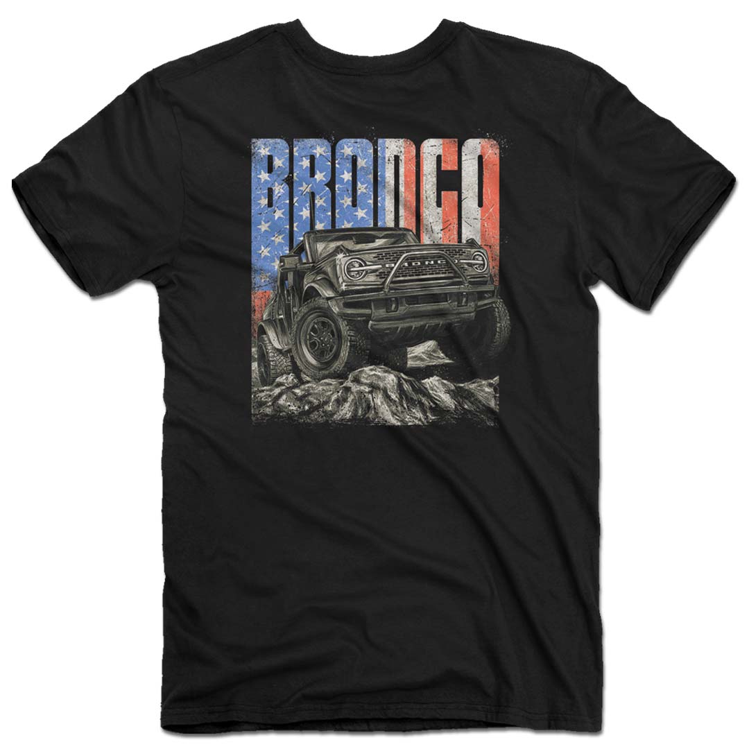 Built Bronco Tough, Built American Tough. This lightweight shirt is super-soft and features high-quality art on the back and the iconic Bronco logo on the front left chest.