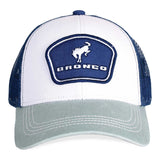 Our Ford Bronco - Patch Hat features a soft cotton front & mesh back with plastic snap closure. The embroidered patch showcases the classic Bronco logo.