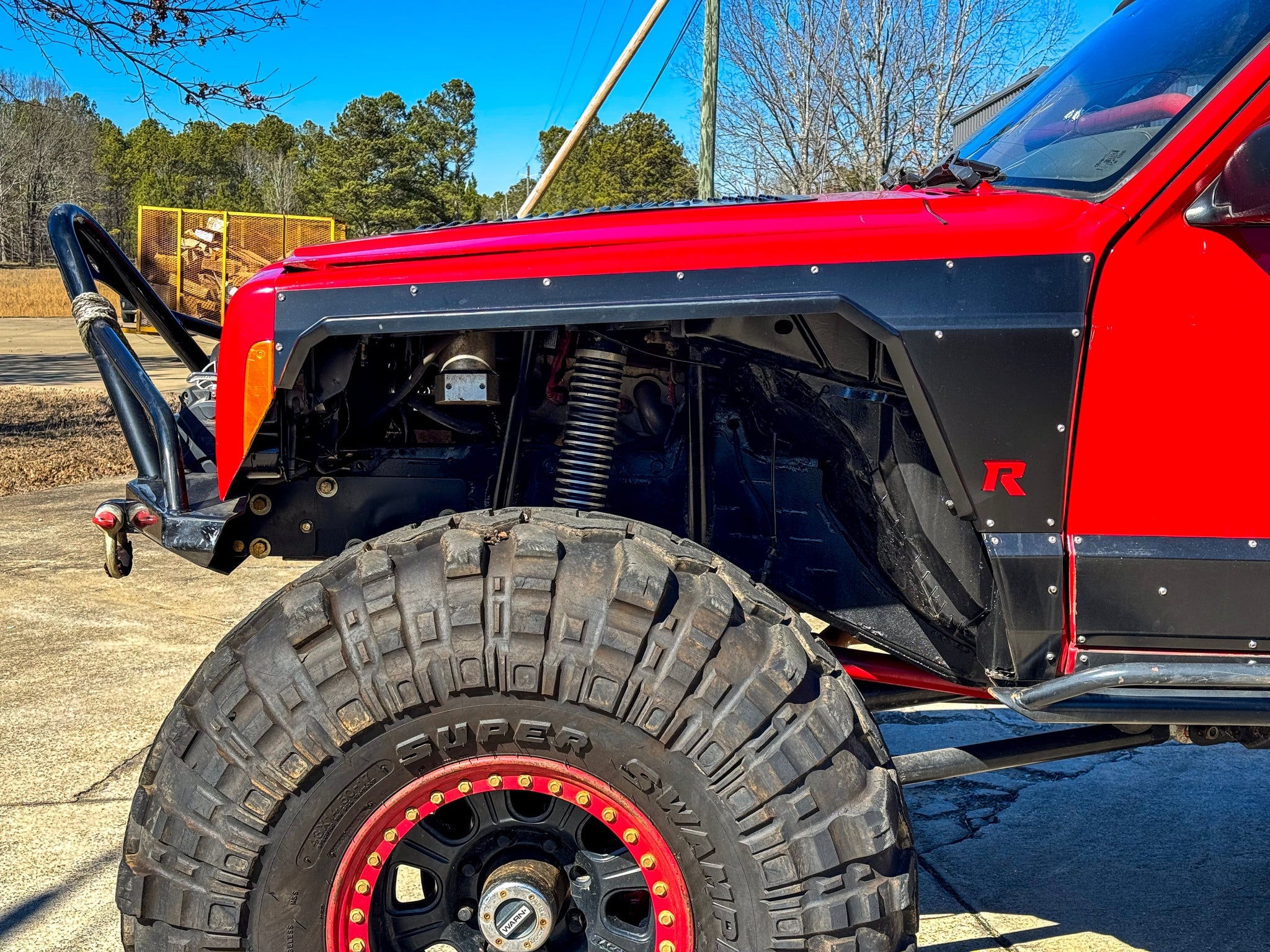 Rusty's crawler high clearance fender flares are the direct result of customer requests for better, more unique body armor for the XJ Cherokee, and we delivered! Rusty's new XJ Extreme-Clearance Fender Flares are built for hardcore trail use and combine aggressive styling with excellent functionality. The body panels are constructed of 1/8" steel, while the flare portion is 3/16". All of the fender components are laser-cut, CNC formed, and then robotically welded for an exact fit. In fact, the flares are constructed in such a way that there are no welds visible on the exterior, so they have strength and good looks to match! Whether you're trying to protect your XJ from damage on the trail or need to cover up some existing trail boo-boos, these are a great solution!